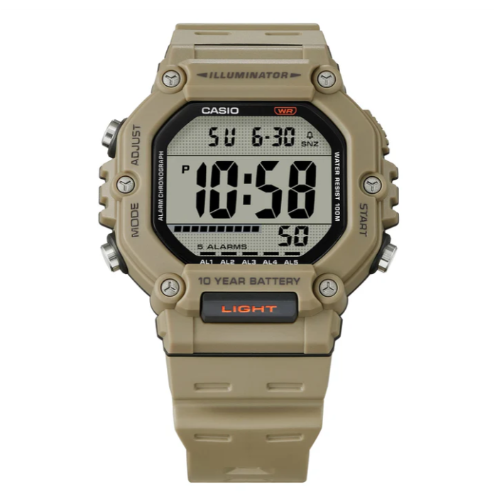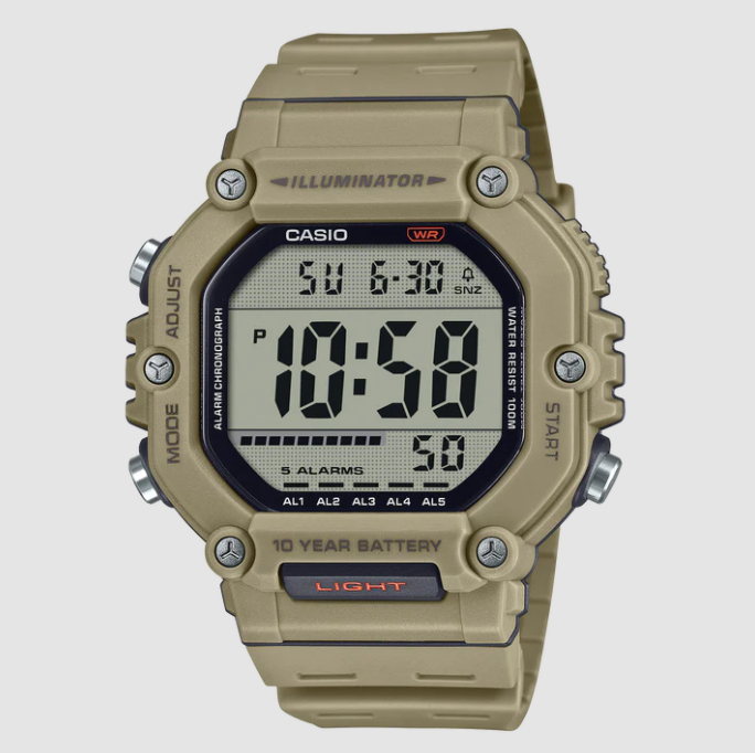 Easily access the LED light from a button on front of the case for even easier use. With 100-meter water resistance and 10-year battery life, you won’t have to worry about this watch for ages.